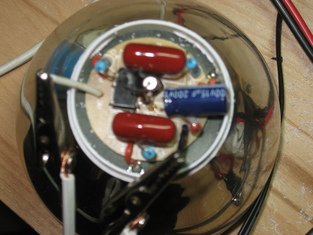 | Once I had the wires clipped, I could see the insides of the thing. Basicly, it's a small power supply. |
